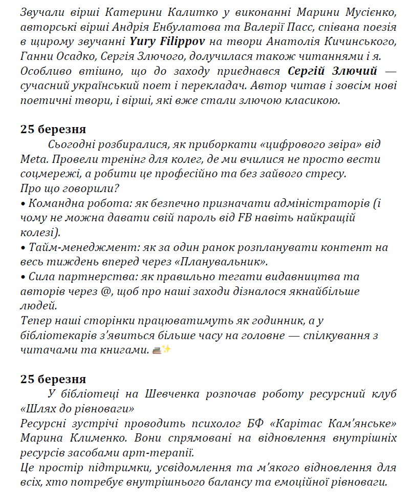 - Звіт про роботу бібліотеки