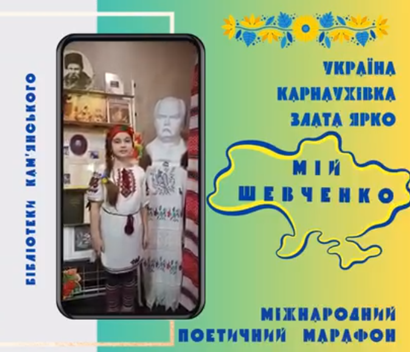 Бібліотека приєдналася до Міжнародного онлайн марафону #Мій_Шевченко, що об'єднав Шевченковим словом українців з усіх куточків країни та світу. Шевченка треба осягати ще змалечку. Тому в ці ювілейні дні вихованці ДНЗ «Вербичка» відвідали бібліотеку, де дізналися про життя і творчість поета, переглянули Дитячий Кобзар, почитали свої улюблені вірші. Маленькі діти вже знають напам’ять багато віршів поета. І поклали до пам’ятника Шевченку перші весняні квіти.