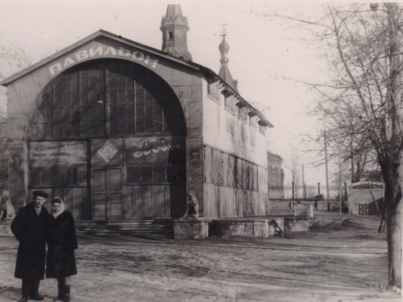 Цей же павільйон між театром та церквою Св. Миколая у 1953 р.