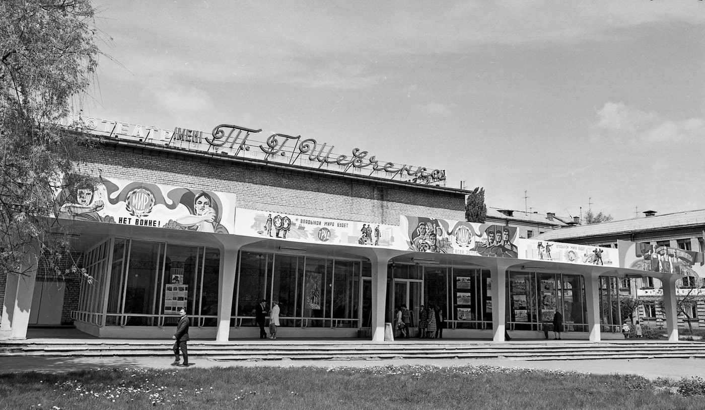 Напередодні свята 1 травня 1965 року на пр. Леніна відкрився новий кінотеатр ім. Т.Г. Шевченка. Відбувся перший сеанс нової кінокомедії "Дайте книгу скарг". Кінофільм дивилися ті, хто споруджував кінотеатр.